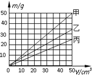 图是小明在探究甲、乙、丙三种物质的质量与体积关系时作出的图像.分析图像可知
