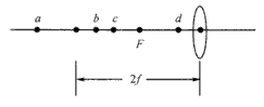 小明在探究凸透镜成像规律时,保持凸透镜的位置不变,先后把蜡烛放在如下图所示的a、b、c、d四点,并分别调整光屏的位置,探究后他归纳出下列说法,其中正确的是