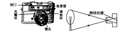 仔细观察如图所示的照相机和成像原理图。