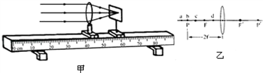 ②如图乙所示,若在光屏上(光屏未画出)能得到清晰放大的烛焰实像,则蜡烛可能置于透镜左边a、b、c、d四点中的 _________,此成像特点可应用在 _________.