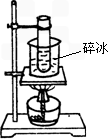 把盛有碎冰块的大试管插入烧杯里的碎冰块中,用酒精灯在烧杯底部慢慢加热,如图所示,当烧杯中的冰块大部分熔化时,试管中的冰