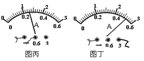 如图所示的温度计的读数甲是_________℃、乙是________℃;如图所示的电流表的读数丙是_______A、丁是________A。