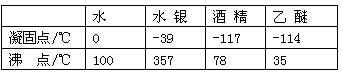下表是一些物质的凝固点和沸点,根据下表回答,制作能测量开水温度的温度计应选哪种液体:_____________________;在寒冷的地区最低温度可达-50℃以下, 能在这一地区使用的温度计又应选用哪种液体:___________________
