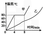 图是甲、乙两种物质熔化时的温度一时间图象,其中物质_____是晶体,它的熔点是_____℃,在第6 min时,这种晶体处于_____状态。