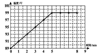 在“观察水的沸腾”实验中,当水温升到89℃时,小刚开始计时,每隔1min记录一次水的温度。然后,小刚根据实验数据绘制了如图所示的温度随时间变化的图像。