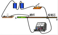 如图所示,用铅笔芯做成一个滑动变阻器,移动左端的铜环可以改变铅笔芯接入电路的长度.开关闭合后,铜环从A端向B端滑动,电压表示数和小灯泡亮度的变化情况是