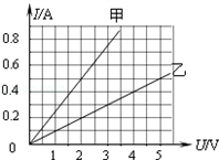 通过甲、乙两个电阻的电流I随其两端电压U变化的情况如图所示.由图可知,电阻值比较大的是