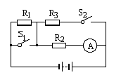 如图所示。R1=10 Ω,R2=20 Ω,R3=30 Ω,电源电压恒定不变。S1闭合,S2 断开时电流表的读数为0.3A 。问:(1) 电源的电压是多少?(2) 当S1与S2均断开时,电流表的读数是多少?R1两端的电压是多少?(3) 当S1与S2均闭合时,电流表的读数又是多少?通过R3的电流是多少?