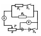 如图所示,电阻R1的阻值为5 Ω,(1 )当开关S1闭合,S2断开,滑片P 滑至最左端时,电压表示数为6V ,电流表示数为0.3A ,滑动变阻器最大阻值是多少?(2)若R2的阻值为20Ω,当开关S1、S2均闭合,滑片P滑至最右端时,电流表的示数多少?