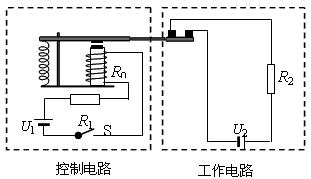 、开关等组成,当线圈中的电流大于或等于20mA时,继电器的衔铁被吸合,右边工作电路则断开;“工作电路”由工作电源U
