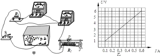 是定值电阻,电源两端电压保持不变.当滑动变阻器滑片P从最右端滑到最左端,电压表示数随电流变化的图象如图乙所示,则滑动变阻器的最大阻值为