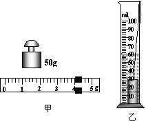 小敏在实验室测量金属块的密度.小敏先用调节好的天平测量金属块的质量. 天平平衡后,右盘中所放砝码及游码在标尺上的位置如图甲所示,则金属块的质量为________g.然后,小敏将金属块用细线系好放进盛有40ml水的量筒中,量筒中的水面升高到如图乙所示的位置,则金属块的体积为_________cm3.该金属块的密度与下表中_______的密度相同.