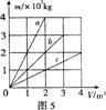 分别由不同物质a、b、c组成的三个实心体,它们的质量和体积的关系如图5所示,由图可知 【 】