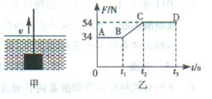 如图甲所示,长方体金属块在细绳竖直向上拉力作用下从水中开始一直竖直向上做匀速直线运动,上升到离水面一定的高度处。图乙是绳子拉力F随时间t变化的图像,取g=10N/Kg。根据图像信息,下列判断正确的是( )