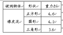 另一小组的同学则认为“物体重力的大小可能跟物体形状有关”,他们以橡皮泥为实验对象,用小刀将橡皮泥雕刻成各种形状进行实验,实验数据如右下表所示。分析表中实验数据,这一组的同学得出实验结论是:物体重力的大小与物体的形状_______________(填:“有关”或“无关”)。你认为他们的结论_______________(填:“正确”或“不正确”),请你对此实验过程及实验结论做出评价。评价:__________________________________________________________。