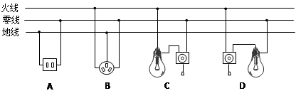 在家庭电路中,如图所示的有关电灯、开关和插座的连线正确的是 。