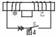 如图4所示,甲乙两线圈套在光滑的玻璃棒上,当S闭合时,两线圈将( )
