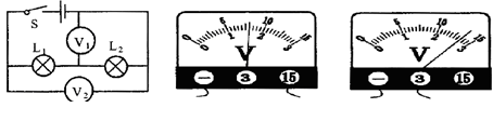 如图所示的电路中,小灯泡L1和L2都标有“3V 0.25A”字样,电源由2节1.5V的干电池串联而成。则下列说法中正确的是( )