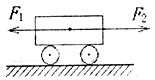 如图所示,光滑水平面上的小车受到同一直线上的两个力作用,F1=6N,F2=8N。则
