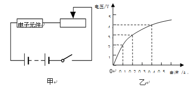 如图甲所示,电源电压恒为9伏,滑动变阻器的最大阻值为100欧,电流在0.1安~0.4安之间时电子元件均能正常工作。若通过此电子元件的电流与其两端电压的关系如图乙所示,则下列判断正确的是