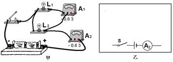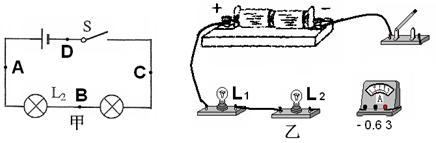 小明用下图甲所示的电路图探究串联电路中的电流特点。