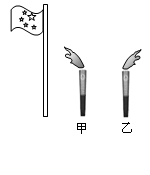 2008北京奥运圣火传递活动中,现场某记者同时拍下了固定在地面上随风飘动的旗帜和附近的甲、乙两火炬照片,如图所示。根据它们的飘动方向,可