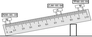 某物理兴趣小组利用带有刻度尺的斜面,小车和数值钟“测量小车的平均速度”,如图所示,图中显示的是他们测量过程中的小车在甲、乙、丙三个位置及其对应时间的情形,显示时间的格式是“时:分:秒”