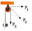 利用定滑轮将同一重物匀速提升时,若所用拉力的方向如图所示,则F1、F2和F3的大小关系是