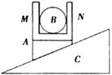 如图所示,上方固定有长方体盒子的斜劈A放在固定的斜面体C的斜面上,在盒子内放有光滑球B,B的直径略小于盒子内侧前后壁间的距离。现使斜劈A在斜面体C上静止不动,此时盒子内侧的M、N点对球B均无压力。以下说法中正确的是