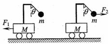 ,放在光滑的水平面上,小车横梁上用细线各悬挂一质量为