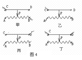 图4表示的是滑动变阻器连入电路的四种接法,当滑片P向右滑动时,能使电路中电流变小的是( )