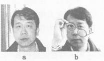 图中a、b是同一人的两幅照片,b图中他拿的眼镜