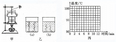 ①请根据记录的数据,在图丙中先描点,再用平滑的曲线画出水的沸腾图像.