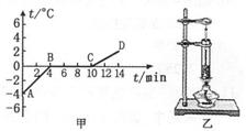 (1)如右图甲所示,是小明根据实验数据作出的冰加热时温度随时间变化的图像。分析图像可知,冰的熔点是_________℃,其熔化过程的特点是吸收热量温度_________。在第7min该物质处于__________(选填“固态”、“液态”或“固