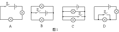图1所示的四个电路中,闭合开关S后,两灯属于串联的是