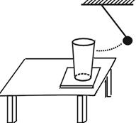 聚酯棉、软木、泡沫),进行了图示实验:桌面上放一个玻璃杯,在玻璃杯下分别放上待测试的小块材料,将悬挂在细线下的小球拉到同一高度释放去敲击玻璃杯,仔细比较玻璃杯发出的声音大小。
