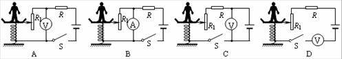 小明观察了市场上的测重仪后,设计了如图5四个电路(R是定值电阻,R1是滑动变阻器).可以测量人体重的电路是( )