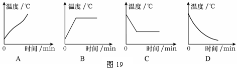 (3)在探究结束后,四位同学分别交流展示了自己所绘制的水的温度和时间关系的曲线,如下图19所示。其中能正确反映研究水沸腾过程中温度随时间变化关系的是( )