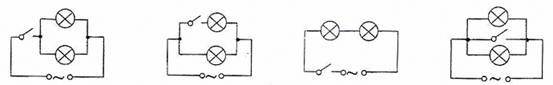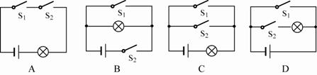小红发现教室里的一个开关可以同时控制两盏灯.图中符合要求的电路图是