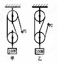 分别用如图所示的两个滑轮组,将同一物体提升到相同高度。若物体受到的重力为100N,动滑轮的重力为20N。把物体匀速提升1m的过程中(不计绳重和摩擦),拉力F2=_________N,若F1做的功为W1,F2做的功为W2,则W1_______W2(填“<”、“>”或“=”),甲、乙两滑轮组的机械效率_______(选填“相等”或“不相等”)。
