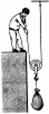 在小型建筑工地,常用简易的起重设备竖直吊运建筑材料,其工作原理相当于如图所示的滑轮组。某次将总重G为4500 N的砖块匀速吊运到高为10 m的楼上,卷扬机提供的拉力F为2500 N,用时40s。求在此过程中: