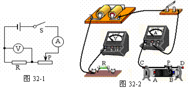 小明用图32-1所示的电路探究“通过电阻的电流跟其两端电压的关系”,图32-2是小明未连接完的实验电路。