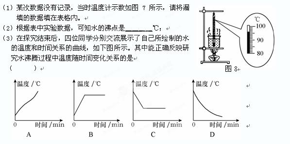 水的温度 /℃ | 90 | 92 | 94 | 98 | 98 | 98 | 98 | 98 |