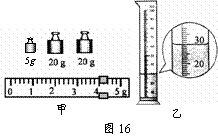 置如图16甲所示,则称得烧杯和液体的质量m为 g。
