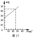 (3)他们对测量方法进行修正后,测出了几组实验数据,并根据测量结果作出了“m-V”图像,如图17所示。由图像可知该液体的密度为 g/cm3;通过查表对照知该液体 。