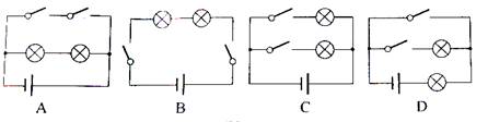 如图所示是一个简易“选答器”.一个问题有两个可选择的答案(a)和(b),与它们对应的灯分别由两个按钮(开关)控制,选择哪一个答案就按下哪一个按钮,对应的灯就亮,那么下图所示各电路图中符合要求的是