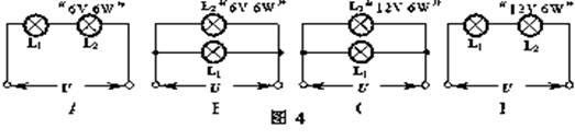 将灯L1接在12V的电路中,功率为12W。若保持电路电压不变,再在电路中连入灯L2,使电路的总功率为18W。在如图所示的四个电路中,连接方法正确的是( )