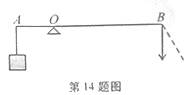 如图,轻质杠杆AB可以绕O点转动,在A点用细线悬挂一重物,在B点施加一个竖直向下的动力,使核杠杆在水平位置保持平衡。若将动力的方向改为沿虚线方向,仍使杠杆在水平位置平衡,则