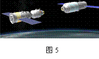 2012年6月18日“,神舟九号”飞船与“天宫一号”实施自动交会对接。图5所示为即将对接时的模拟图, 成功对接后,“神舟九号”内的航天员看到“天宫一号”纹丝不动,地球在缓缓转动,则航天员选择的参照物是