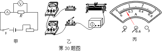 ⑷排除电路故障进行实验,多次改变R的阻值,调节滑动变阻器,使电压示数保持不变,实验数据记录如下表。其中第5次实验电流表示数如图丙所示,其读数为 A。